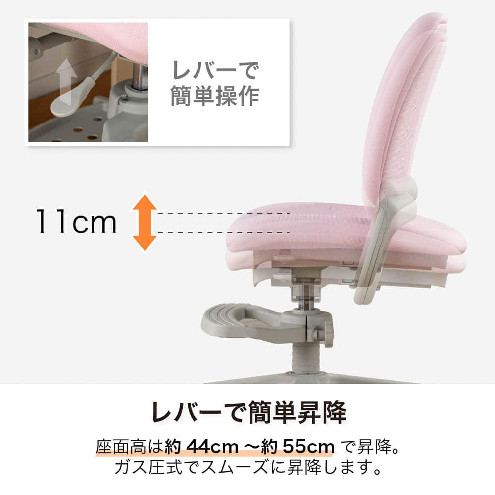 ◆成長に合わせて、座面は11cm上下、前後11cm調節可能。レバーで簡単に操作出来ます。
