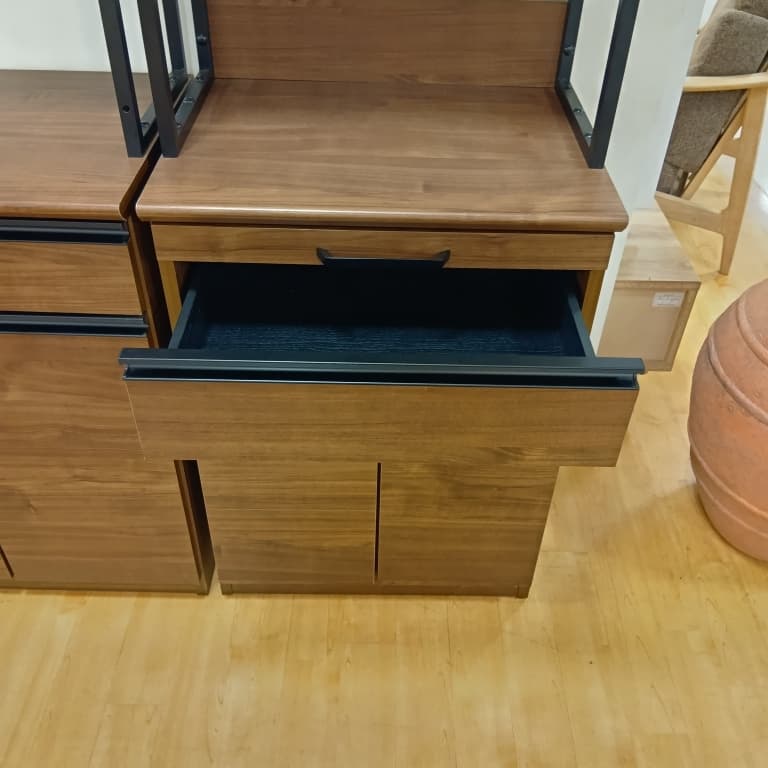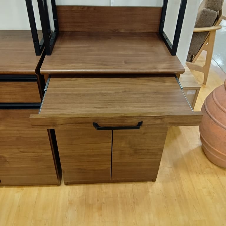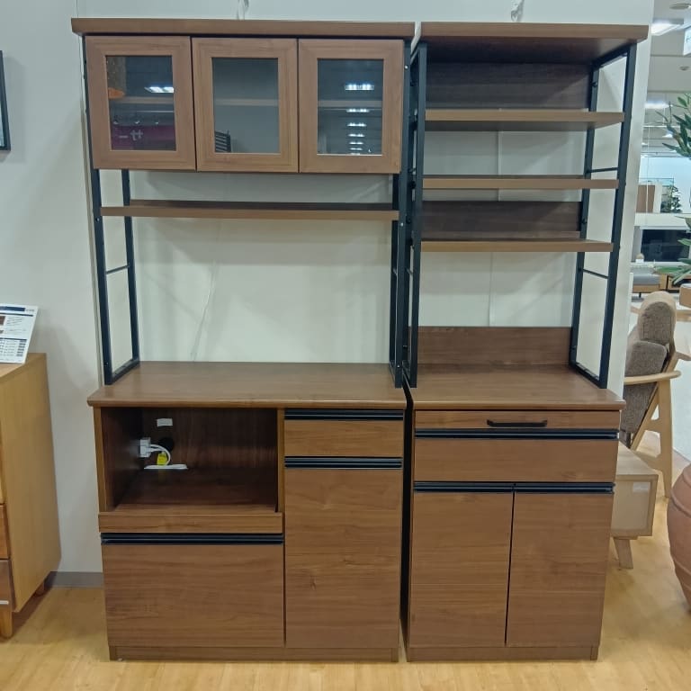 ☆こちらの商品は足立小台店の展示商品のご案内となります。完売品の為、特価にてご案内致します☆ <幅広ダイニングボード>炊飯器の置ける引き出し棚付きです。 / 開き戸内:上部可動棚用3段分穴・固定棚無し・下部可動棚用3段分穴で、取り外し可能な棚板は計2枚です。 / 引き出し内側はシックな黒の仕上がりで、人目に付きやすい場所でも開け閉めしやすい仕様です。<幅狭ダイニングボード> 中央部分には、収納可能な作業台付きです。 / 上部棚板は計3枚です。 / (幅広ダイニングボード同様に)引き出し内側はシックな黒の仕上がりで、人目に付きやすい場所でも開け閉めしやすい仕様です。★ご注文にあたってのお願い・ご了承いただきたい事★