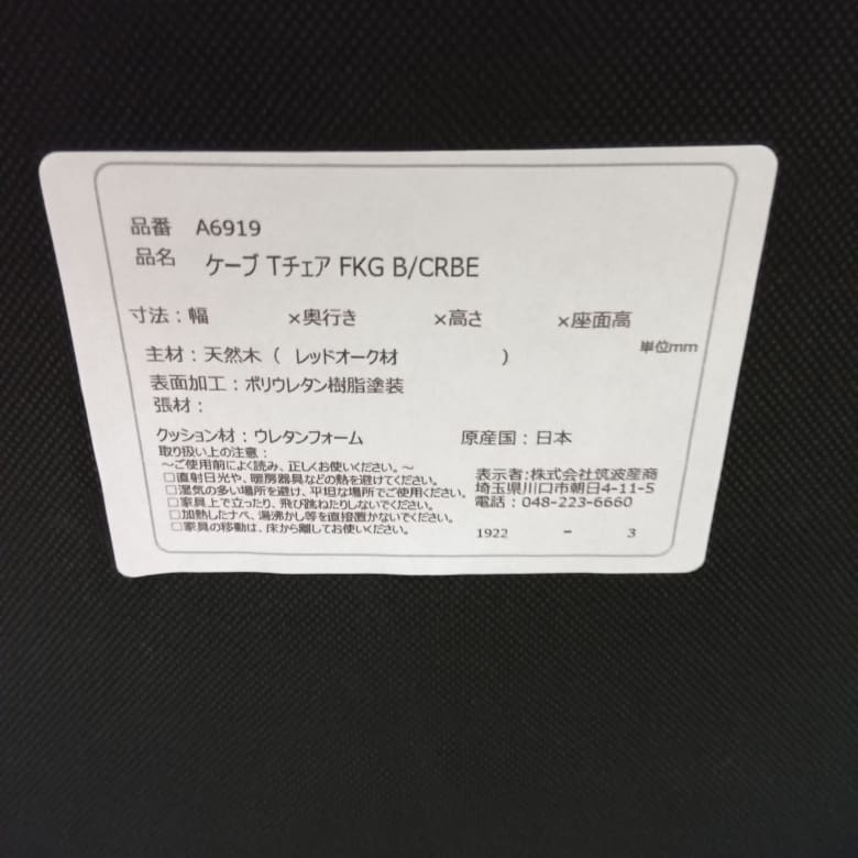 【ホームズ仙川店 関東一部地域限定 展示特価品】 ダイニングチェア ケープ ハイバックTチェア 色/張地Bランク