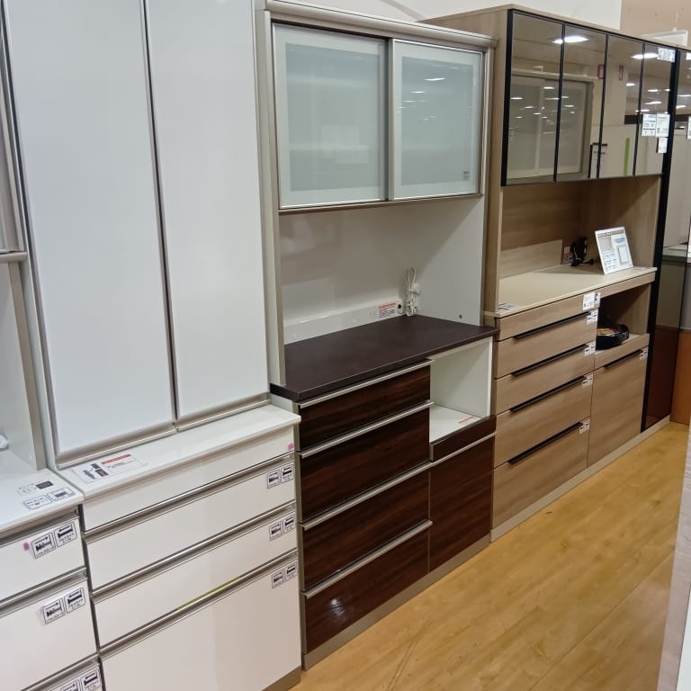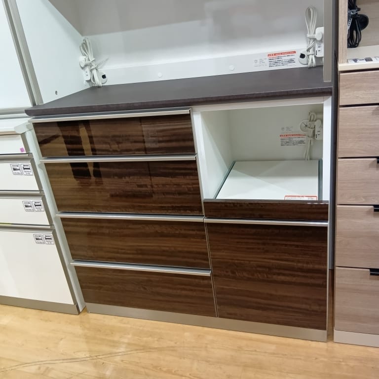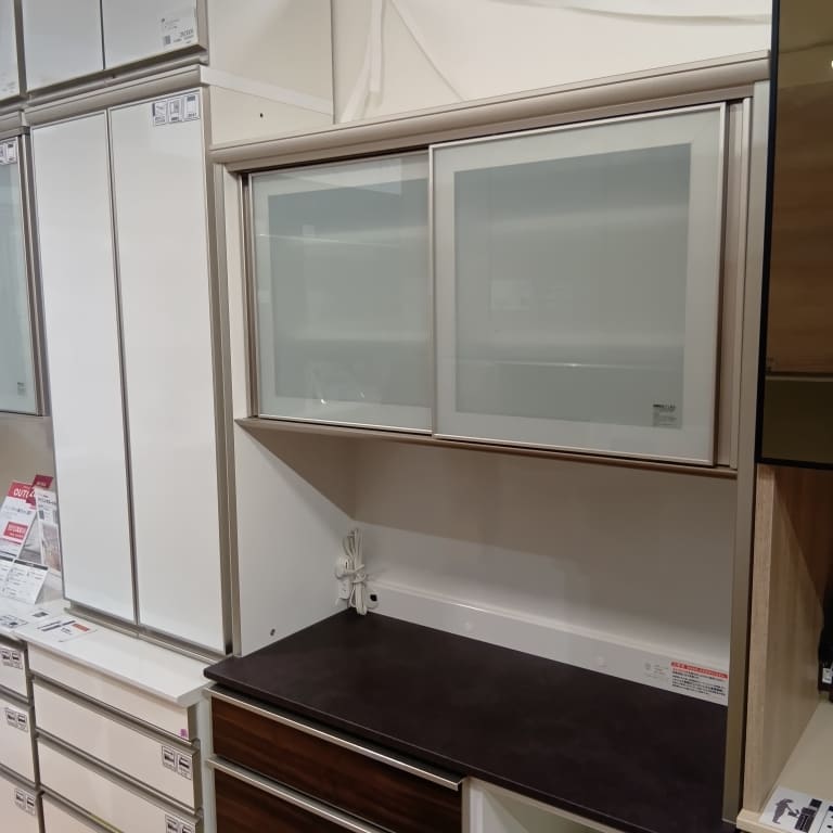 【大和店 関東一部地域限定 展示特価品】 ダイニングボード100p幅 上キャビ【ガラス扉】カンビア シームレス天板(色指定) 下キャビ カンビアIM-(V)100K2