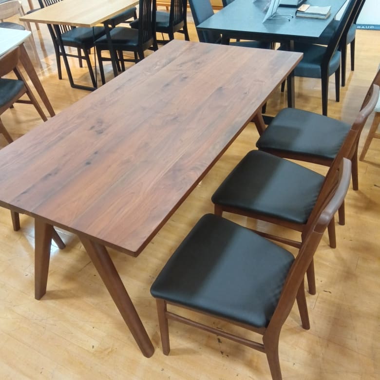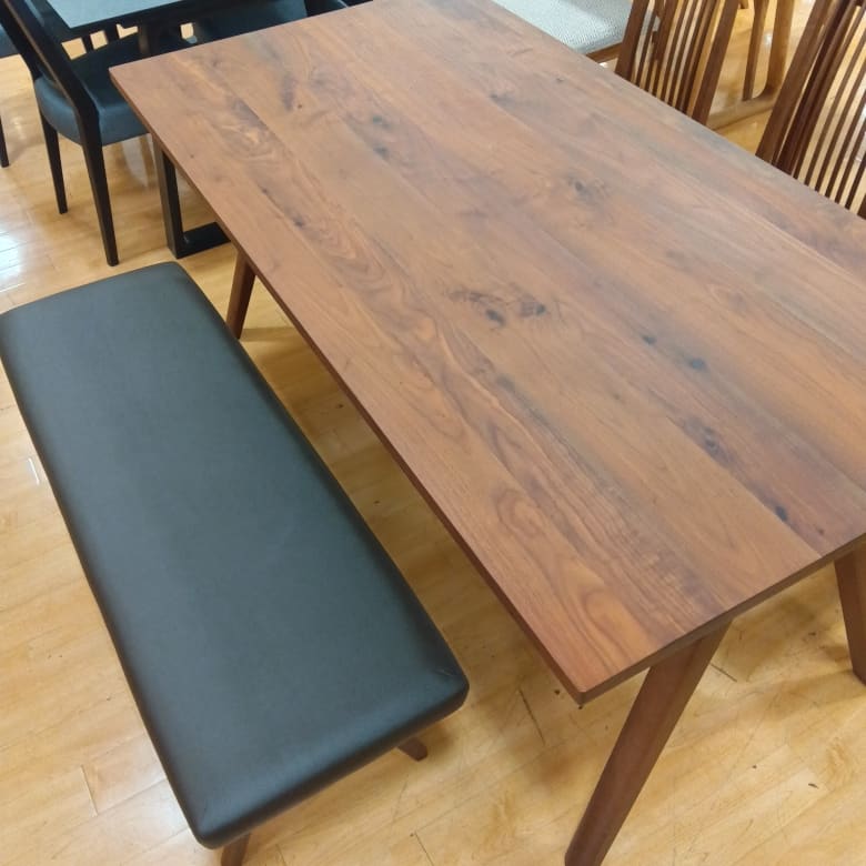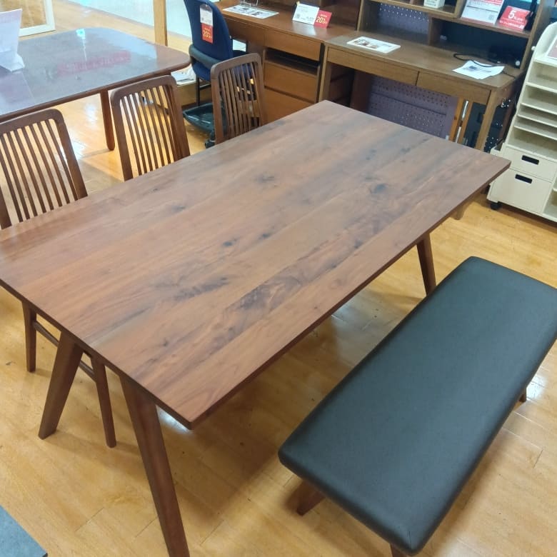【大和店 関東一部地域限定 展示特価品】 ダイニング5点セット Dテーブル WOセレクト165*85G無垢ハノジ脚WAL Dチェア WOセレクトGB Dベンチ WOセレクト120ハノジ脚WAL