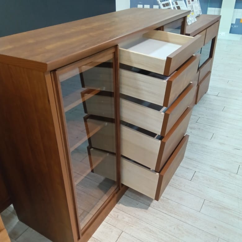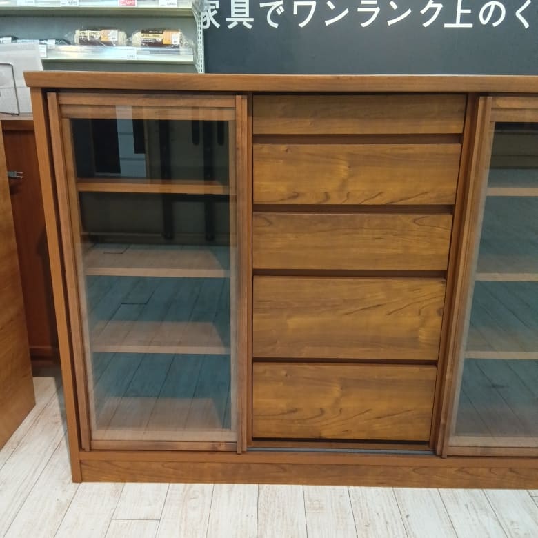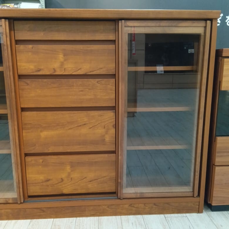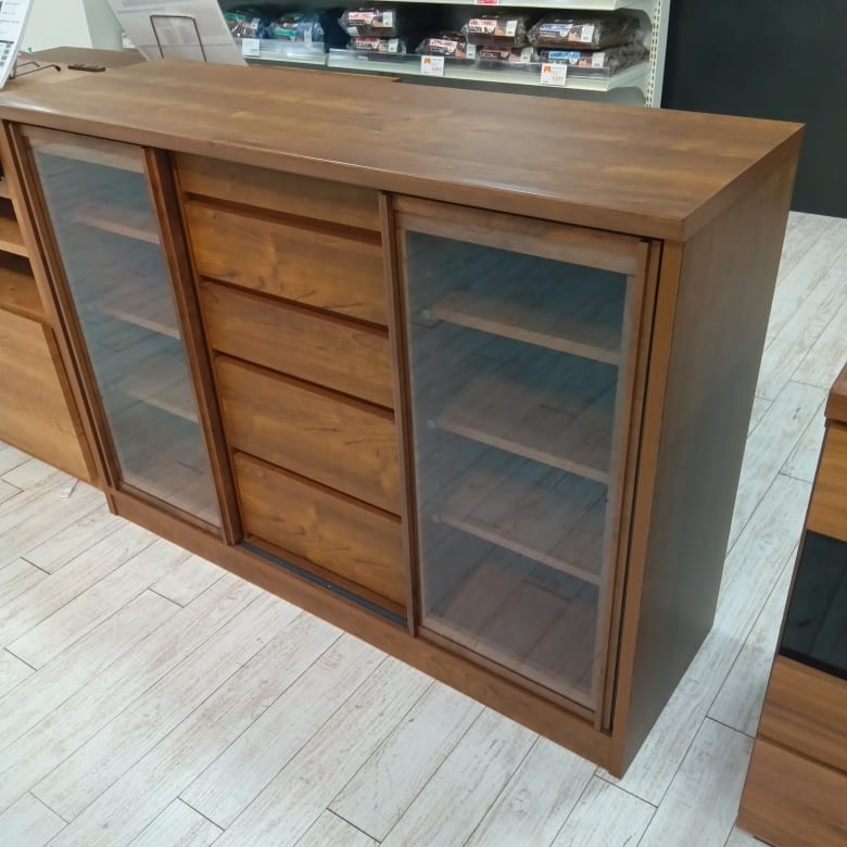 【大和店 関東一部地域限定 展示特価品】 サイドボード サニーU 120 ガラス戸 D=40 BR GA1