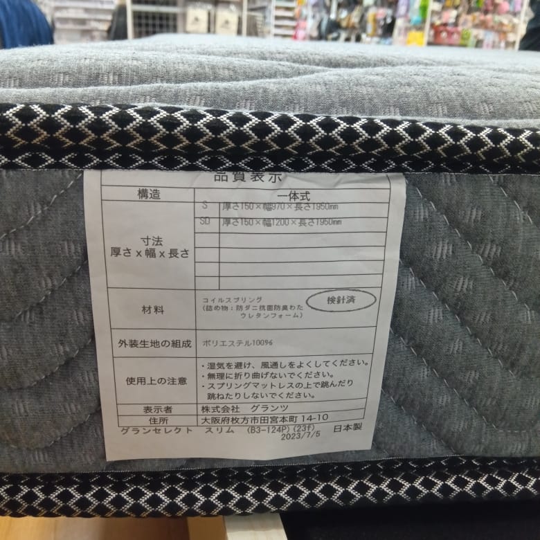 【大和店 関東一部地域限定 展示特価品】 シングルベッド グランセレクト スリム GY フィズリー レッグ