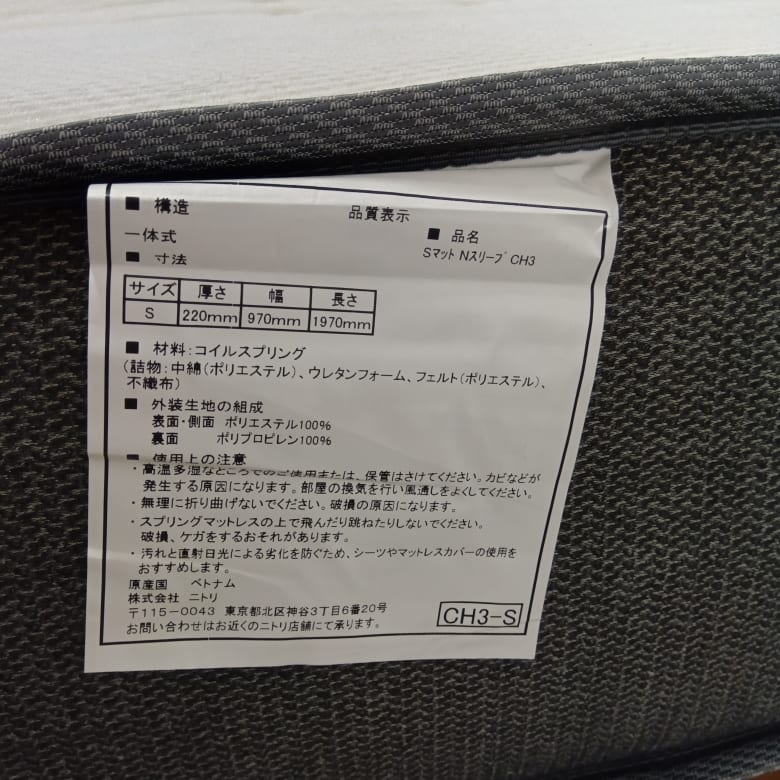 【大和店 関東一部地域限定 展示特価品】 シングルベッド Sマット Nスリープ CH3 スピーク3レッグLBR L1001