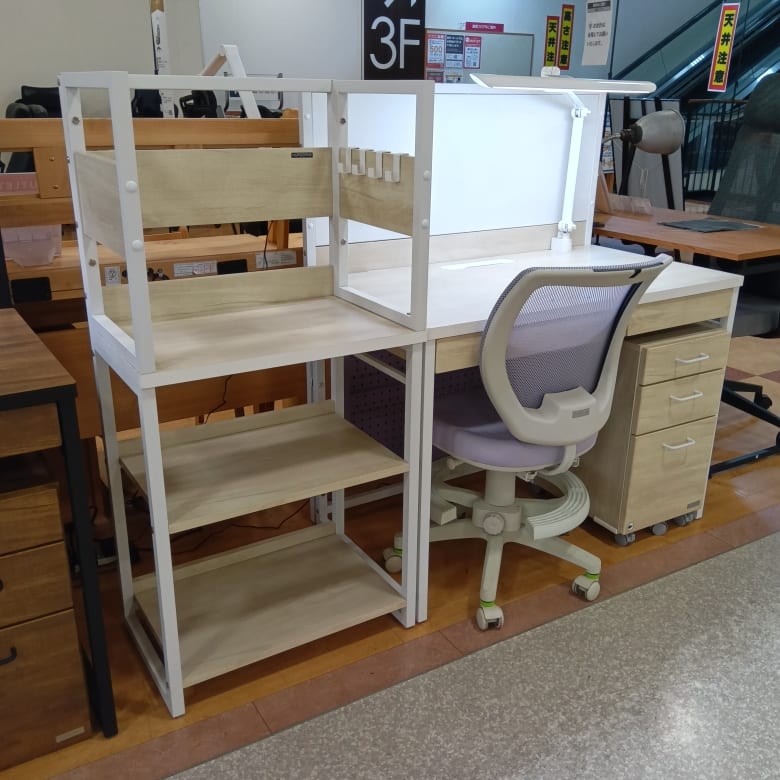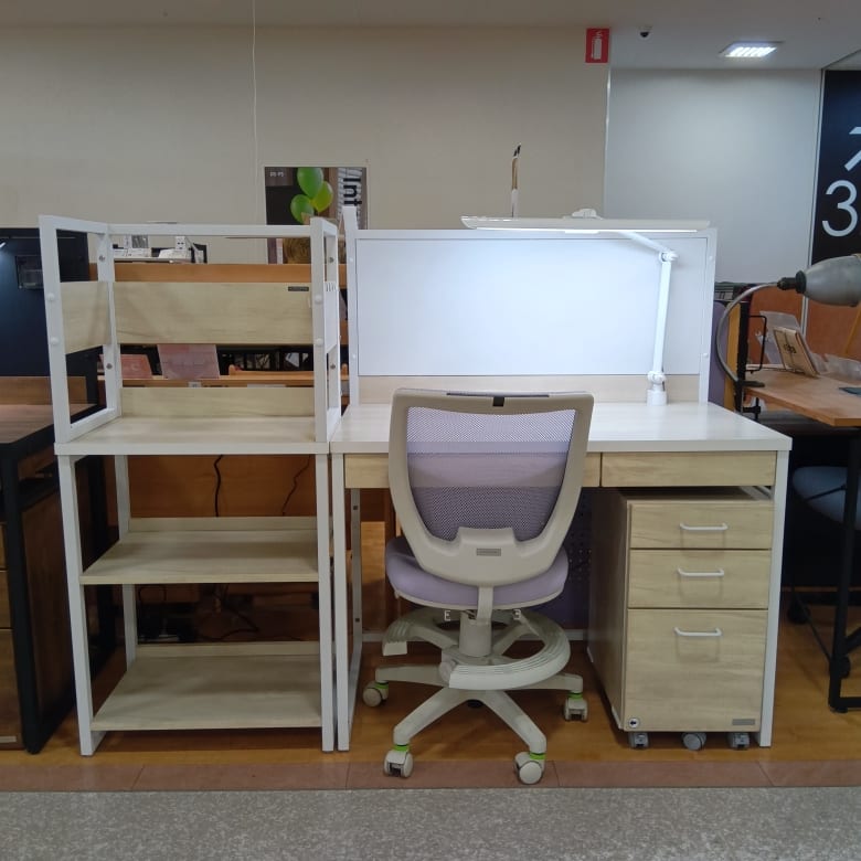 【大和店 関東一部地域限定 展示特価品】 パネル付きデスク・ワゴン・シェルフ・チェア・ライトセット BPS-26CW R-BPS26CW FZFM-23WHVL TS-A19WH