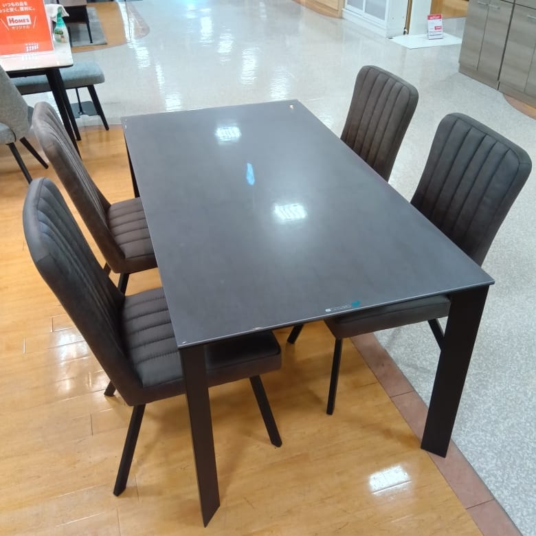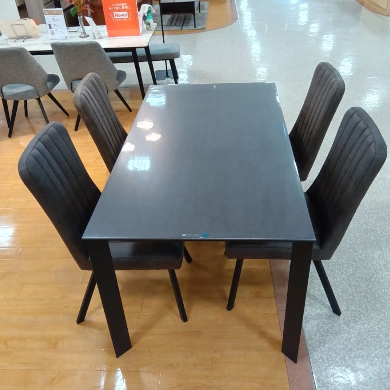 【大和店 関東一部地域限定 展示特価品】 ダイニング5点セット(PSマット付) ストームGY ダイニングチェアグラナダBK PSマット