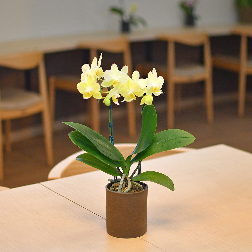 ★【送料無料&10%ポイントバック対象品】ミディ胡蝶蘭イエロー系2本立ち ピック付き【母の日フラワーギフト】