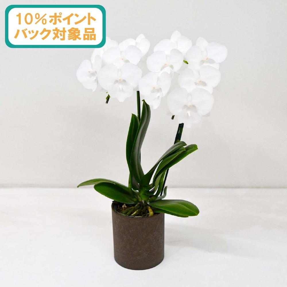 ★【送料無料&10%ポイントバック対象品】ミディ胡蝶蘭白ビッグリップ系2本立ち ピック付き【母の日フラワーギフト】