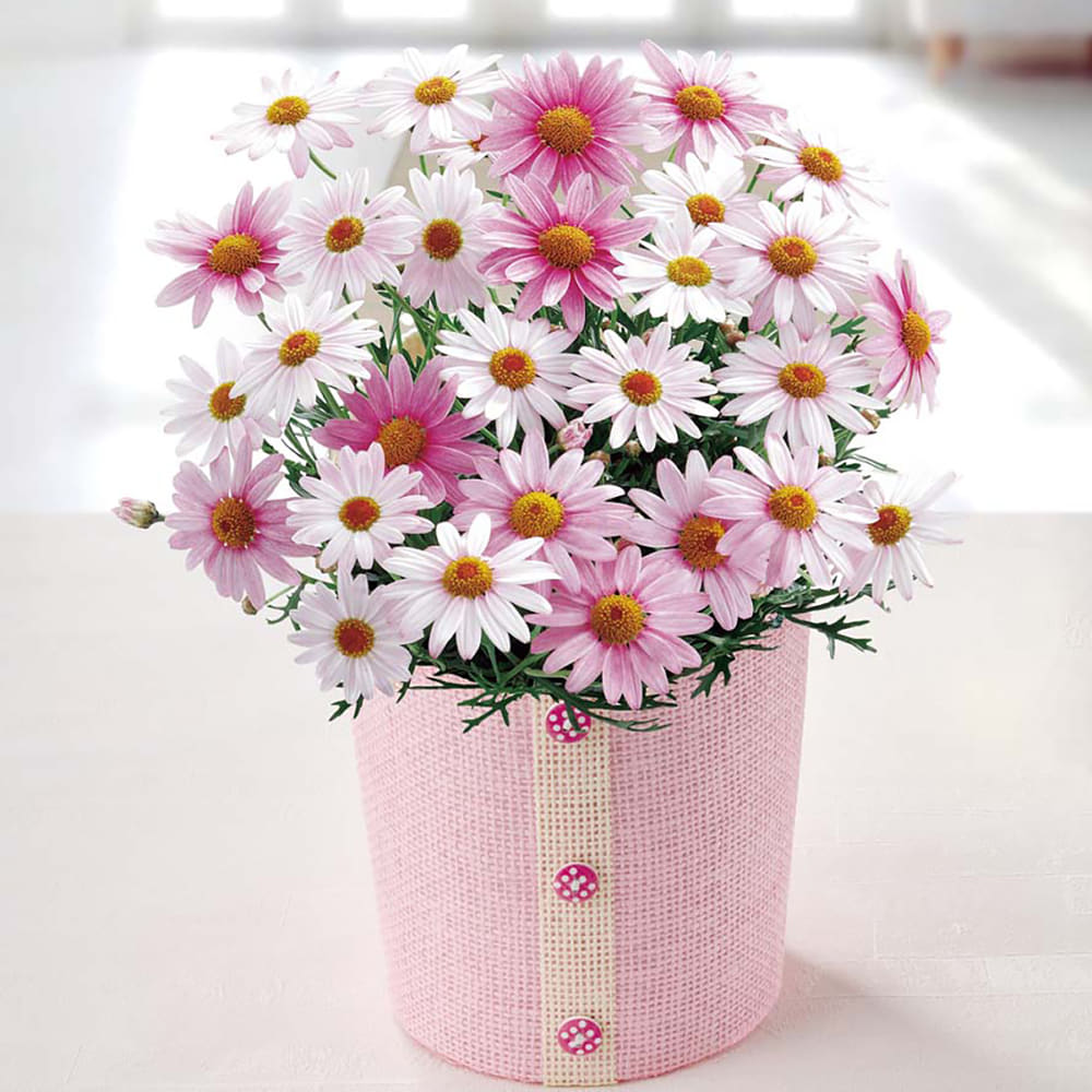 ◆美しいグラデーションが楽しめるマーガレット。咲き始めの白色から淡いピンク色、さらに濃いピンク色へと変化します。◆花は自然の植物のため、花色・濃淡・サイズは写真と異なる場合がございます。