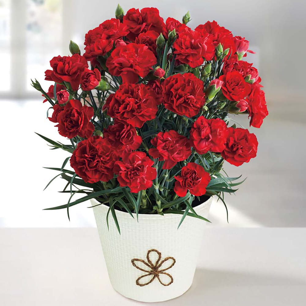 ◆華やかな印象の真っ赤なカーネーション◆バスケット、お手入れのしおり付き