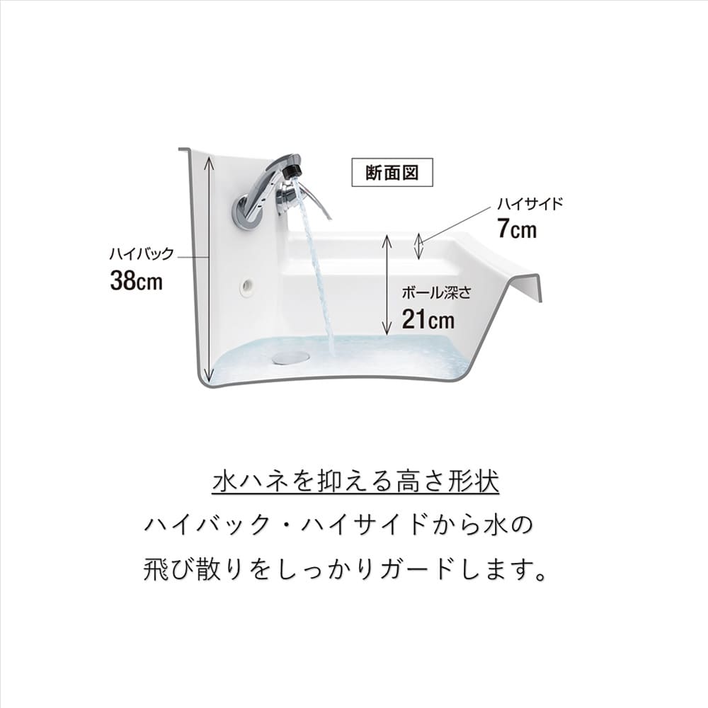 "【商品の特徴】手を洗う時にはもちろん、選択や衣類の予洗いするときに水ハネ、水タレを防いで