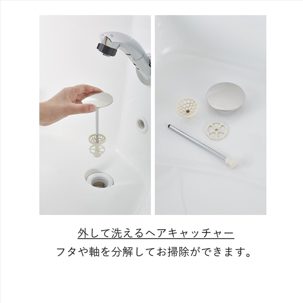 ◆流レールボールLL:髪の毛や石鹸の泡などを自然に排水口に集めて流します。