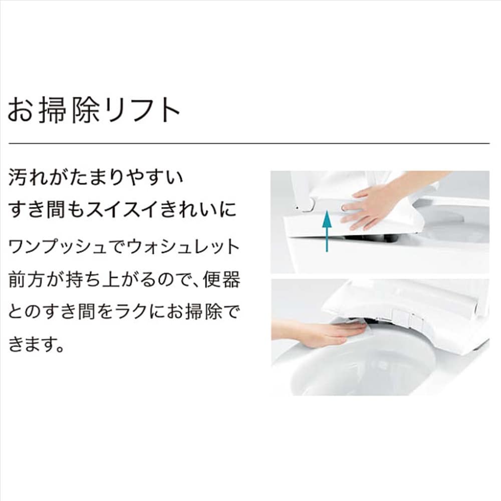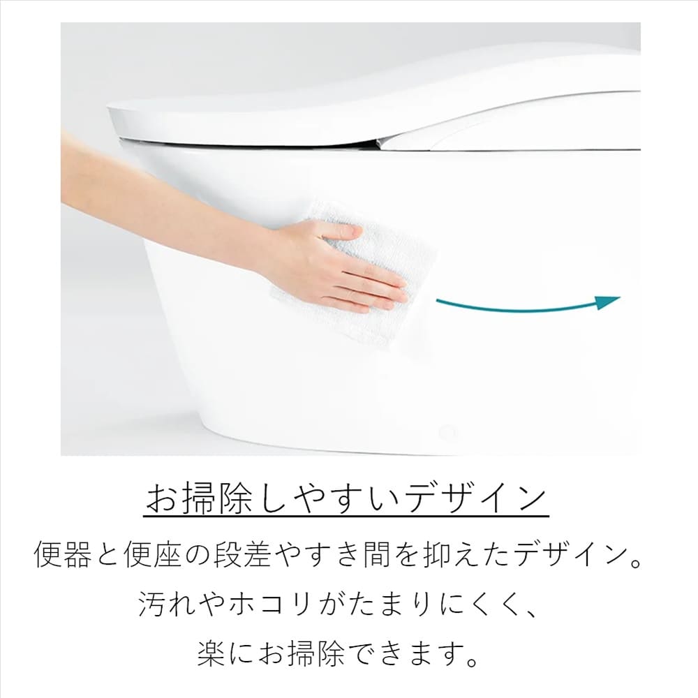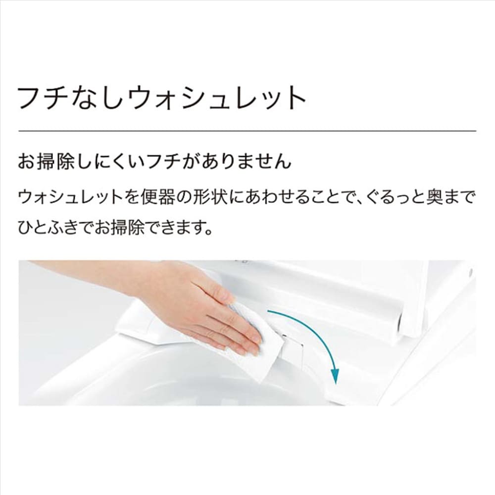 ◆フチなし形状:汚れがたまりやすい便器のフチ裏をなくしたTOTO独自の便器形状。