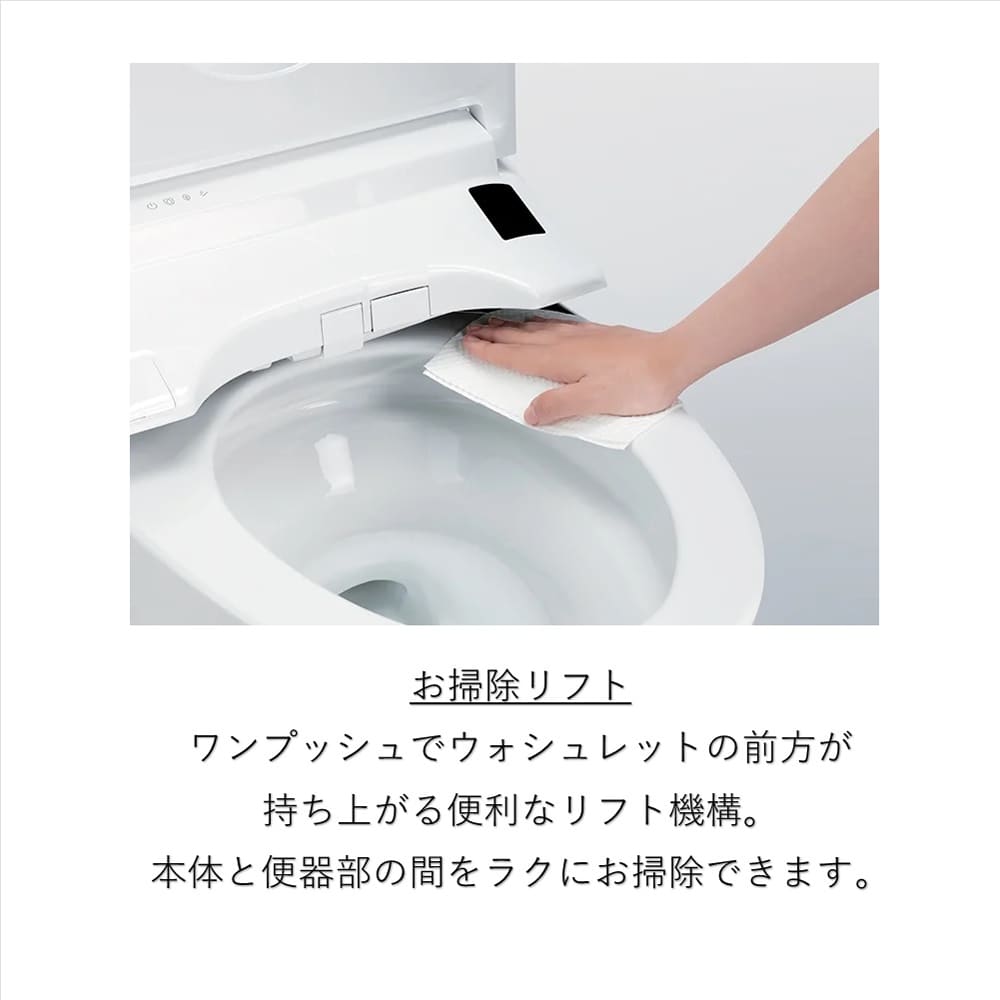 ◆フチなし形状:汚れがたまりやすい便器のフチ裏をなくしたTOTO独自の便器形状。