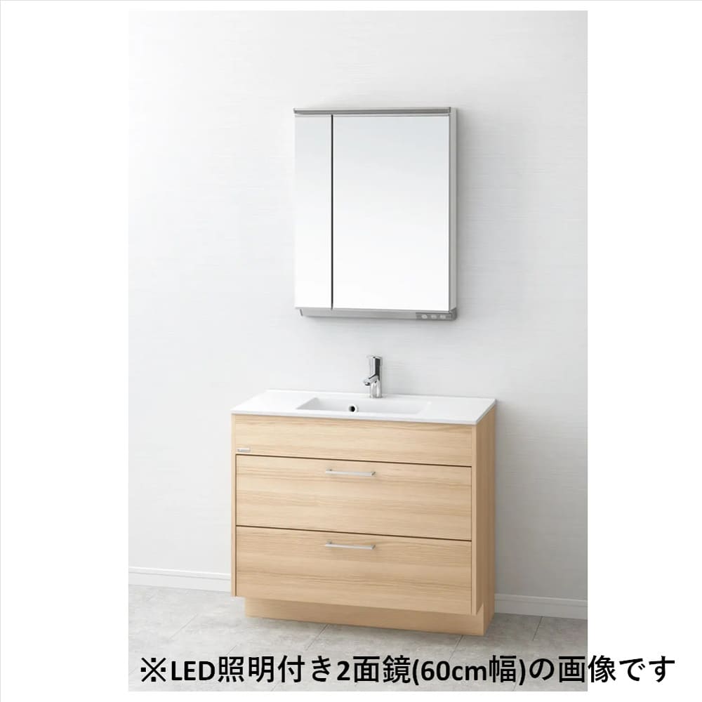 アサヒ衛陶 洗面化粧台 アール 90cm幅 2段引き出しタイプ シングルレバー混合栓 45cm幅 1面鏡 照明無 ミラー裏収納有 商品のみ