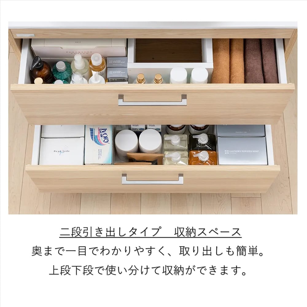 アサヒ衛陶 洗面化粧台 アール 90cm幅 2段引き出しタイプ シングルレバー混合栓 60cm幅 2面鏡 上下LED照明付 ミラー裏収納有 商品のみ