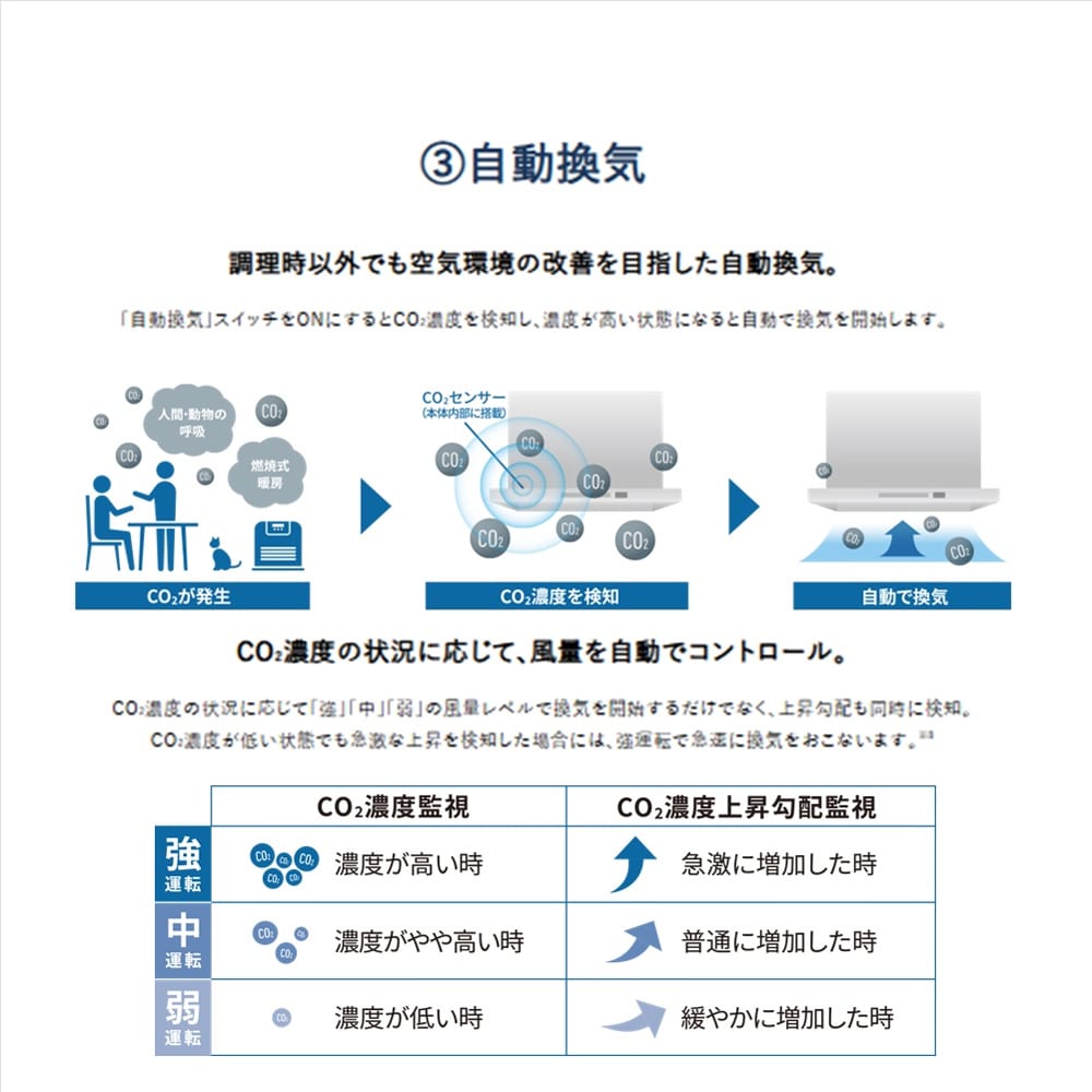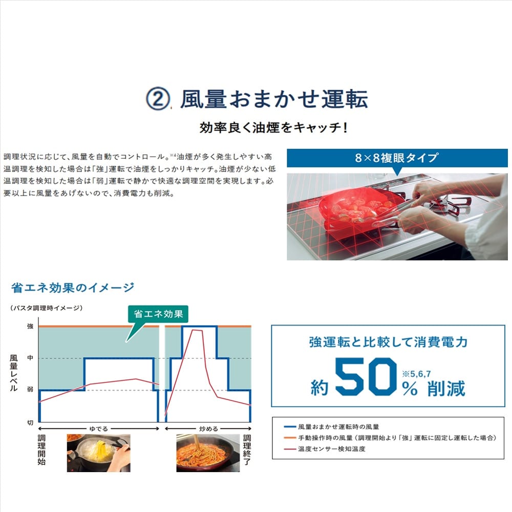 ◆調理状況を温度センサーして風量おまかせ自動運転搭載