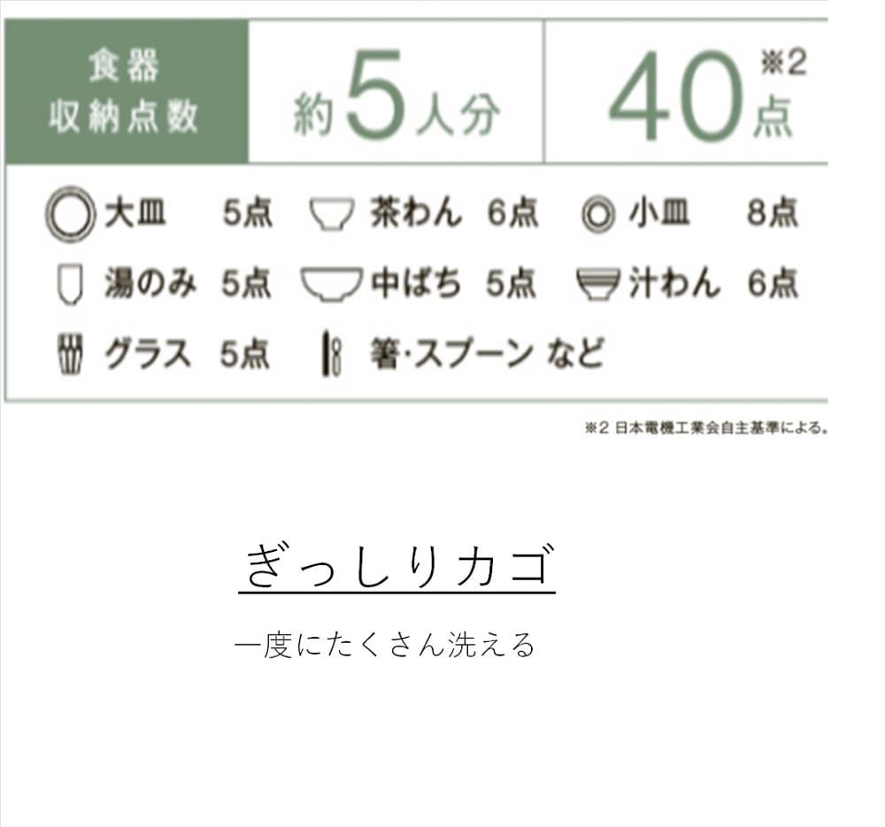 標準食器容量:5人分(40点)