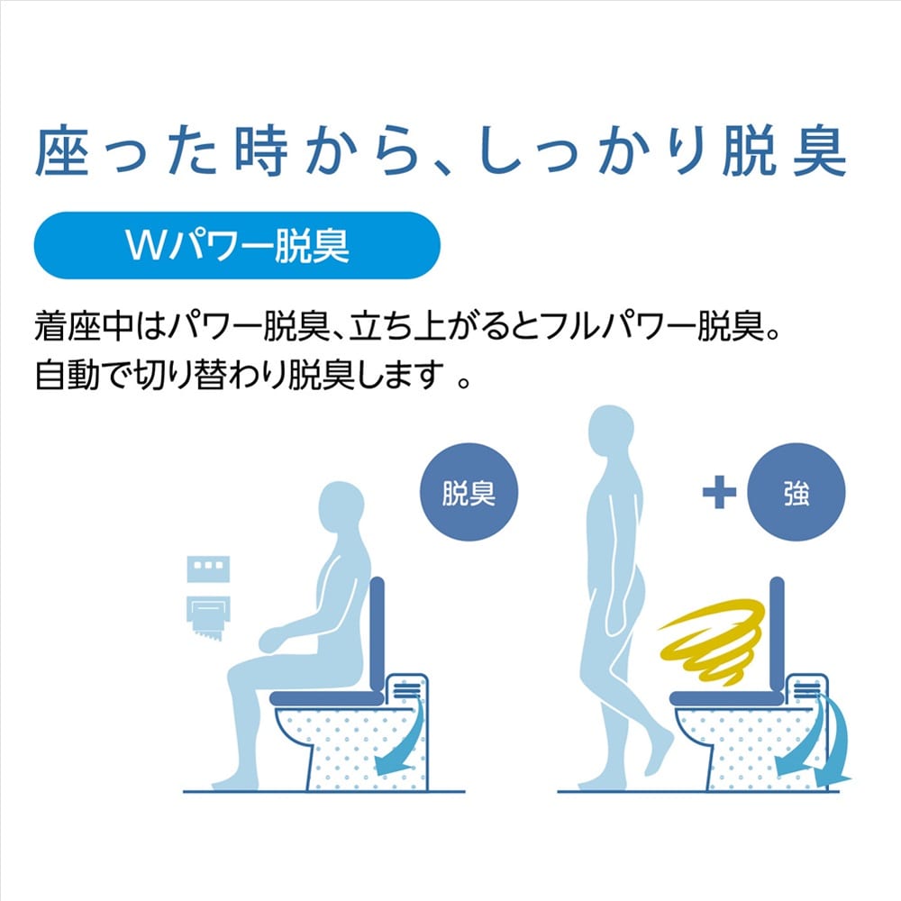 ◆Wパワー脱臭/着座中はパワー脱臭、立ち上がるとフルパワー脱臭。