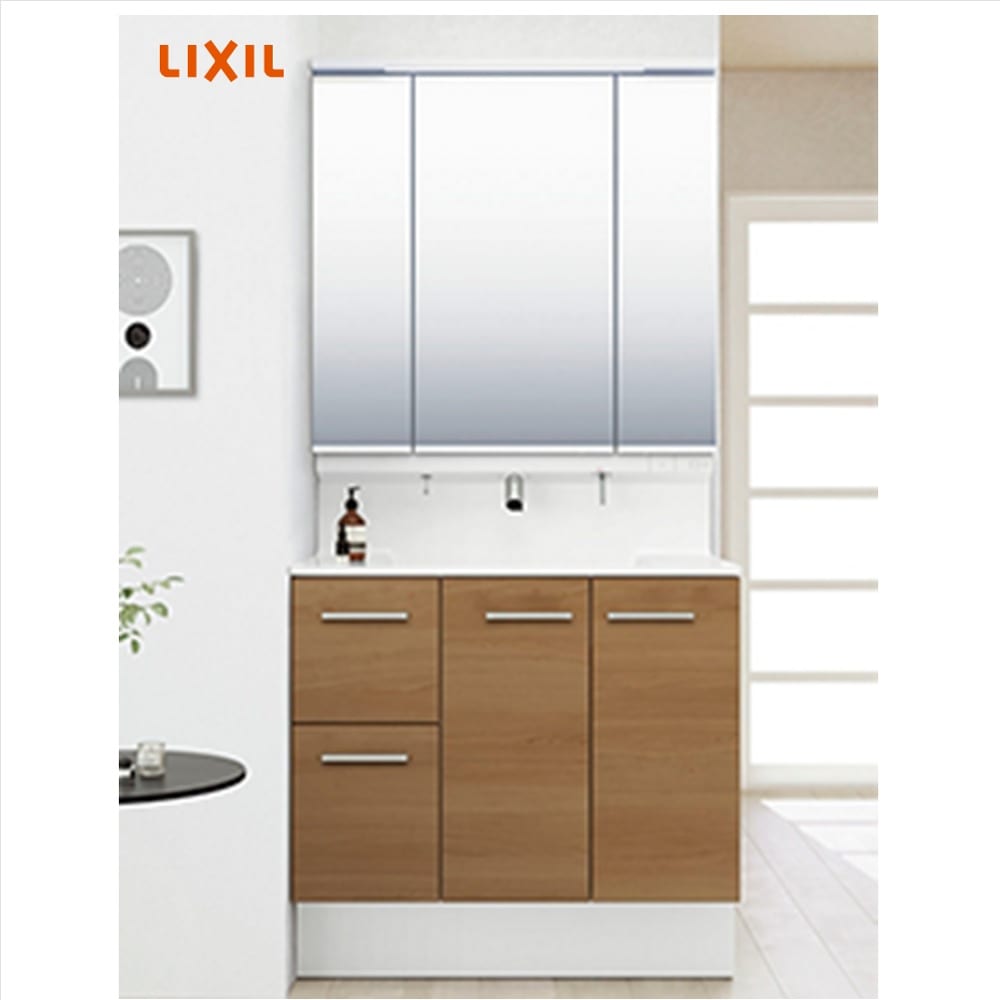 LIXIL 洗面化粧台 R1シリーズ 90cm幅 引出タイプ タッチレス水栓 3面鏡 スリムLED 商品のみ