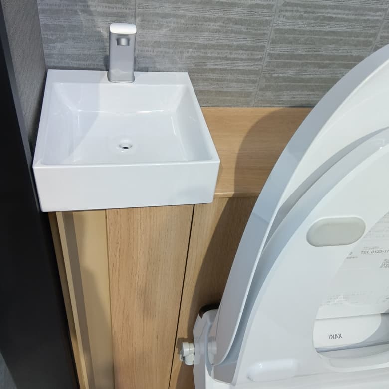 ◆便器手洗器ピュアホワイト 扉・カウンター:ライトオーク