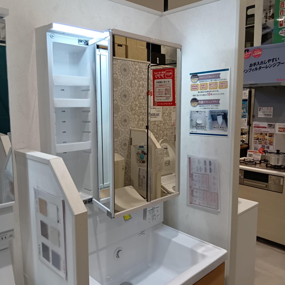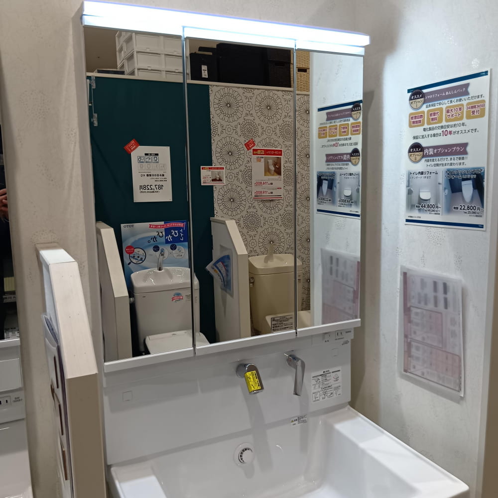 【ニトリホームズ宮原店 展示使用品】 TOTO 洗面化粧台 KZ 75p幅 スウィング三面鏡 2段引出タイプ