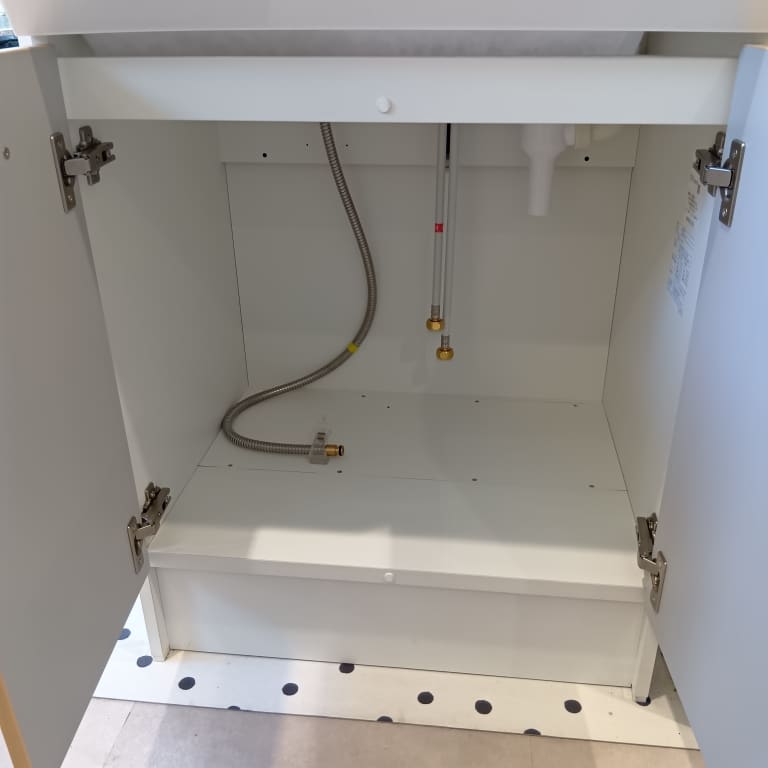 ◆右奥の排水口でスペースたっぷり収納キャビネット