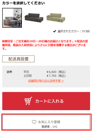 気になる商品は、「お気に入りリスト」に入れて保存しておくことができます。